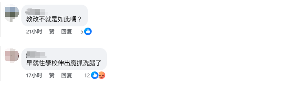 “教改不就是如此嗎?”有網友指出,民進黨早已將魔爪伸向學校,多年來通過推動教改洗腦年輕人,現在又試圖洗腦幼兒,可謂“爛到骨子裡了”。