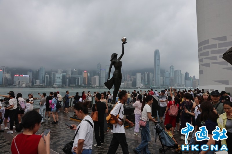 8月5日下午,香港雨勢逐漸減小,香港市面快速恢復正常,下午4時許,已有大批旅客在尖沙咀星光大道正常觀光遊覽。(香港中通社記者 謝光磊 攝) 香港中通社圖片