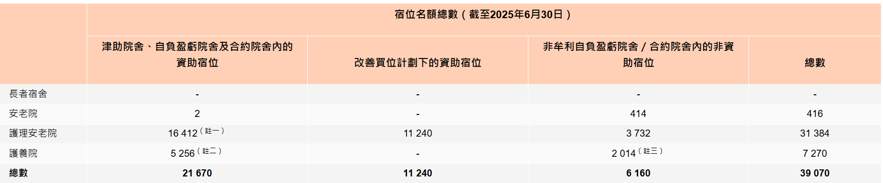 安老院舍照顧服務統計總覽 圖源:香港社會福利署