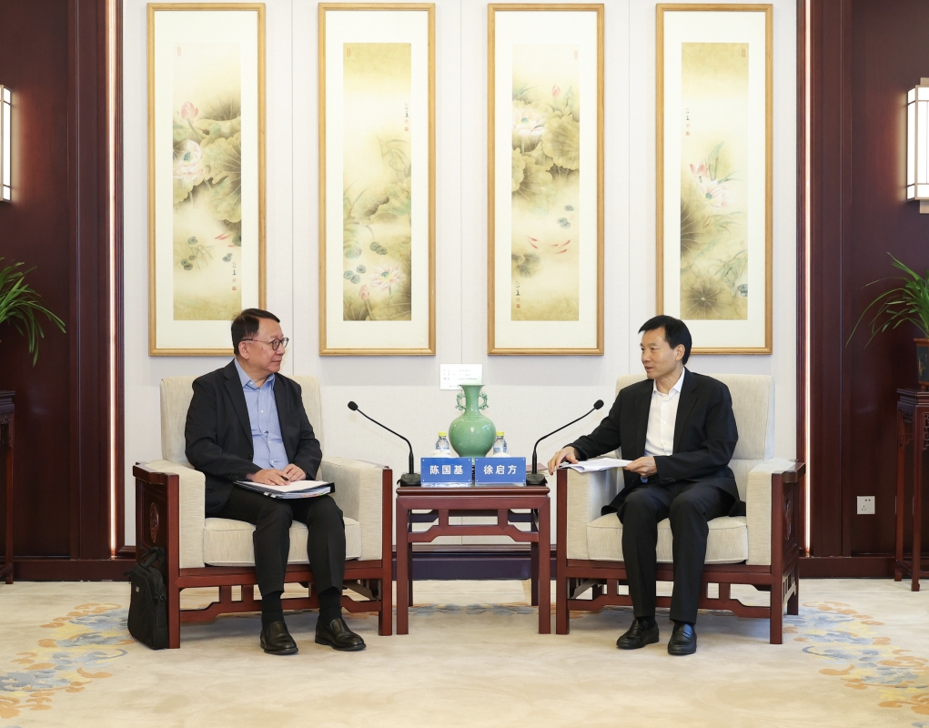陳國基首先拜會中央港澳工作辦公室、國務院港澳事務辦公室分管日常工作的副主任徐啟方,介紹香港特別行政區(特區)政府推動愛國主義教育的新情況,以及籌辦第十五屆全國運動會(十五運會)香港賽區賽事的新進展。政制及內地事務局局長曾國衞亦有出席。