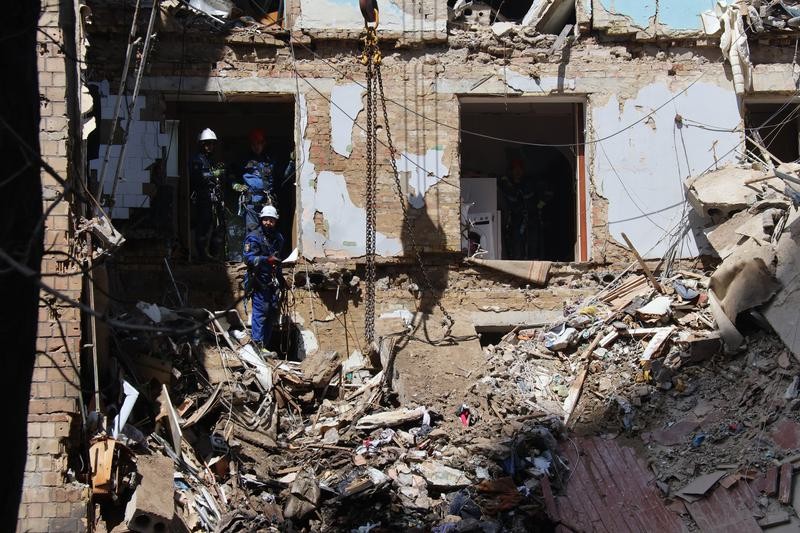資料圖為烏克蘭首都基輔遭空襲現場 圖片來源:新華社