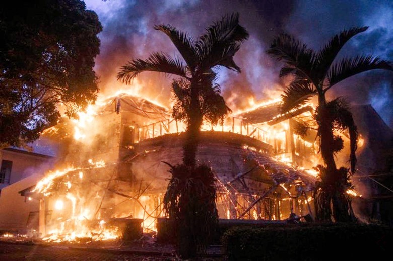 印尼西爪哇省萬隆市8月29日也爆發示威,印尼人民協商會議官方賓館被縱火焚燒。圖自社交媒體