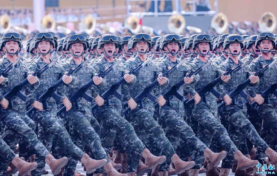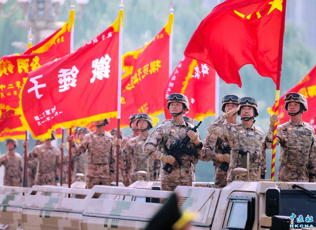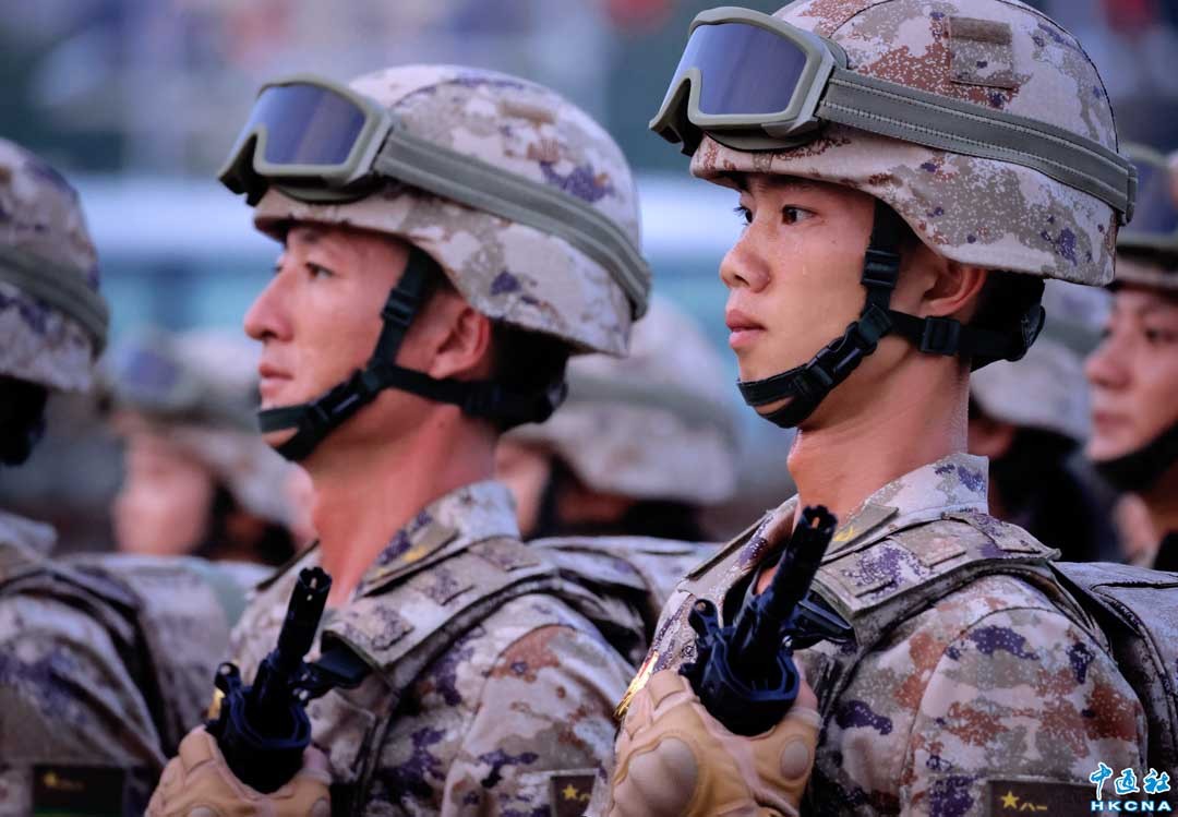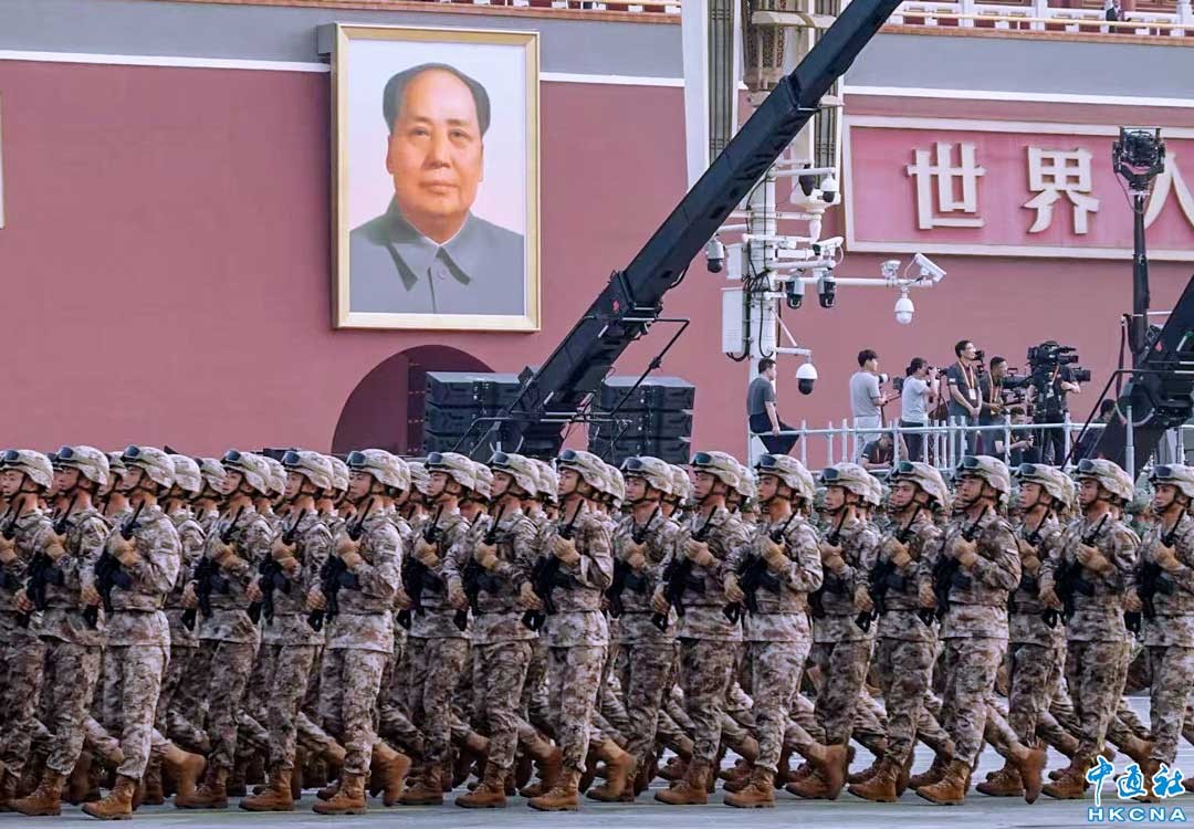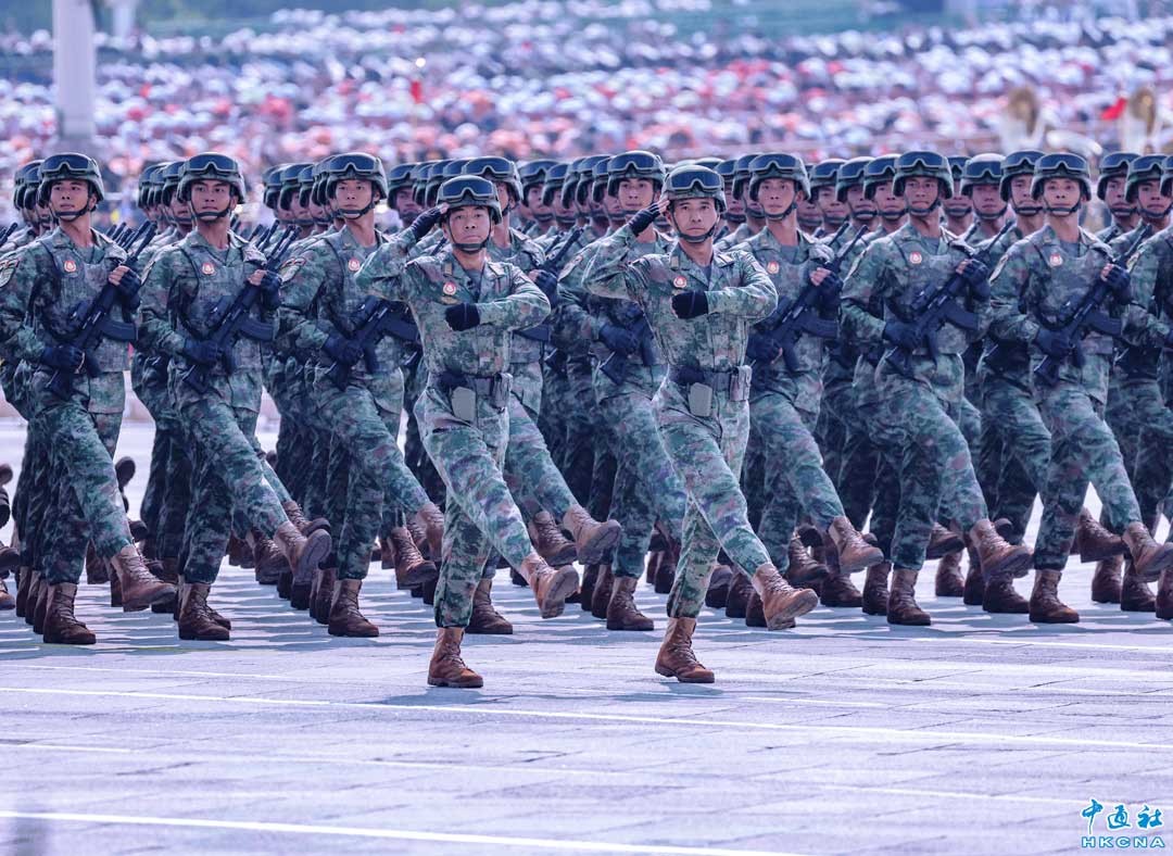 三軍徒步方隊接受檢閱。(香港中通社記者 謝光磊攝)