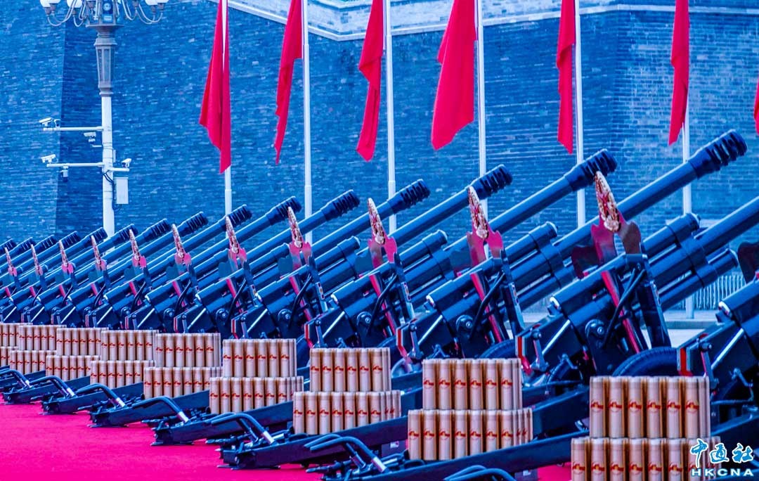 閱兵大會開始前,禮炮準備就緒。(香港中通社記者 陳卓儀攝)