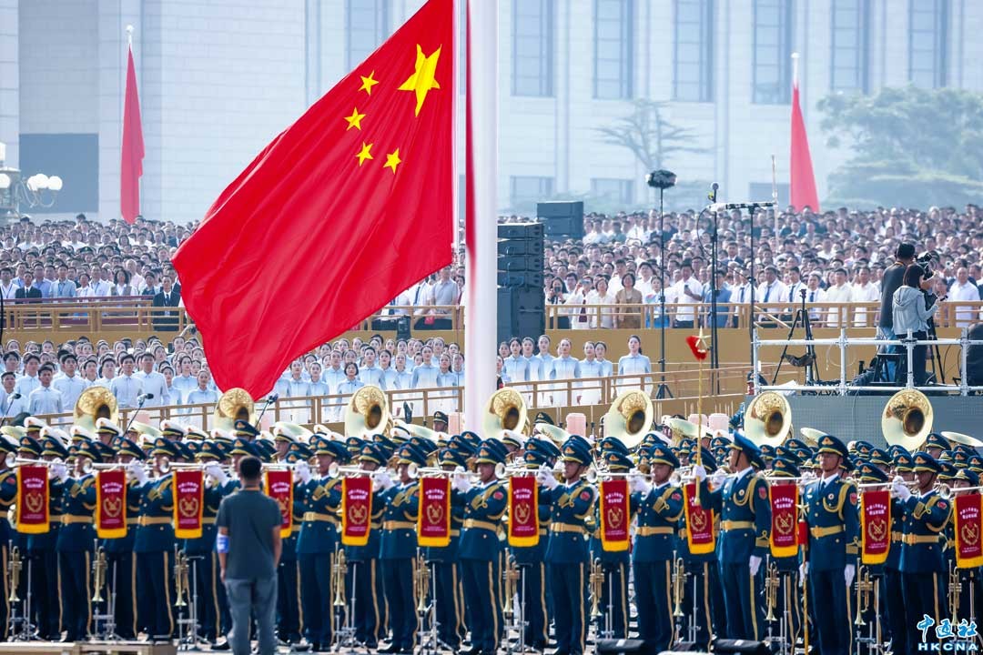 天安門廣場舉行隆重的升國旗儀式。(香港中通社記者 謝光磊 攝)