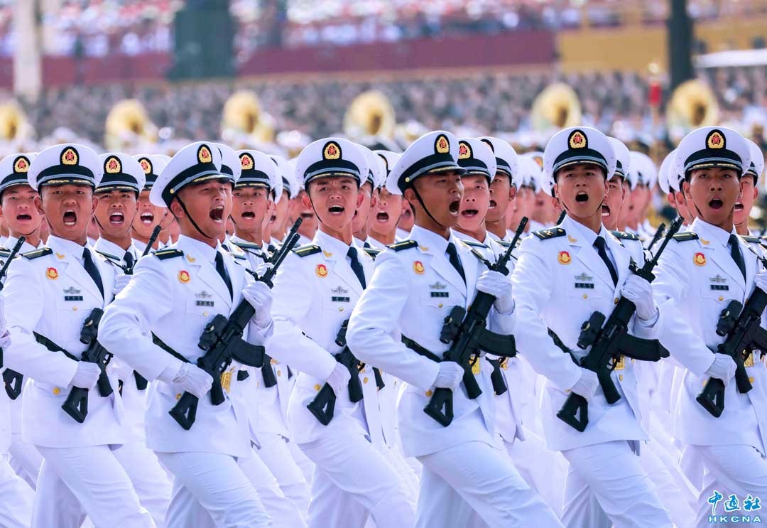 海軍方隊接受檢閱。(香港中通社記者 謝光磊攝)