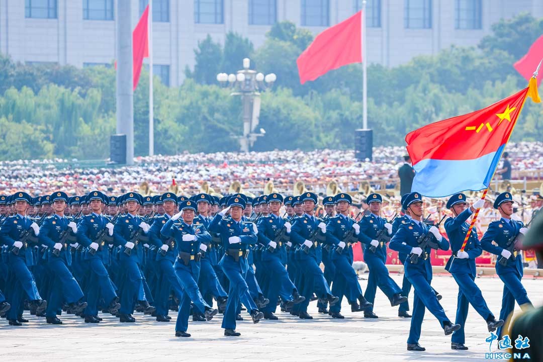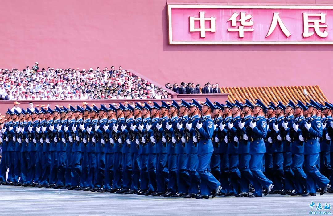 空軍方隊以昂揚的面貌、整齊的步伐,接受祖國和人民檢閱。(香港中通社記者 謝光磊攝)