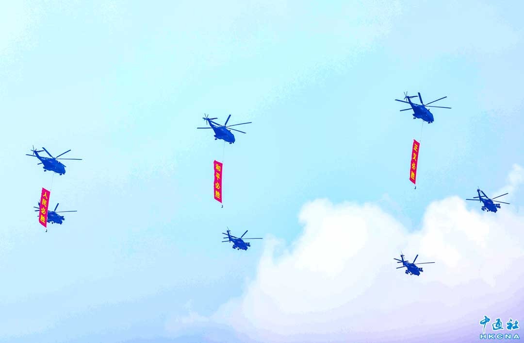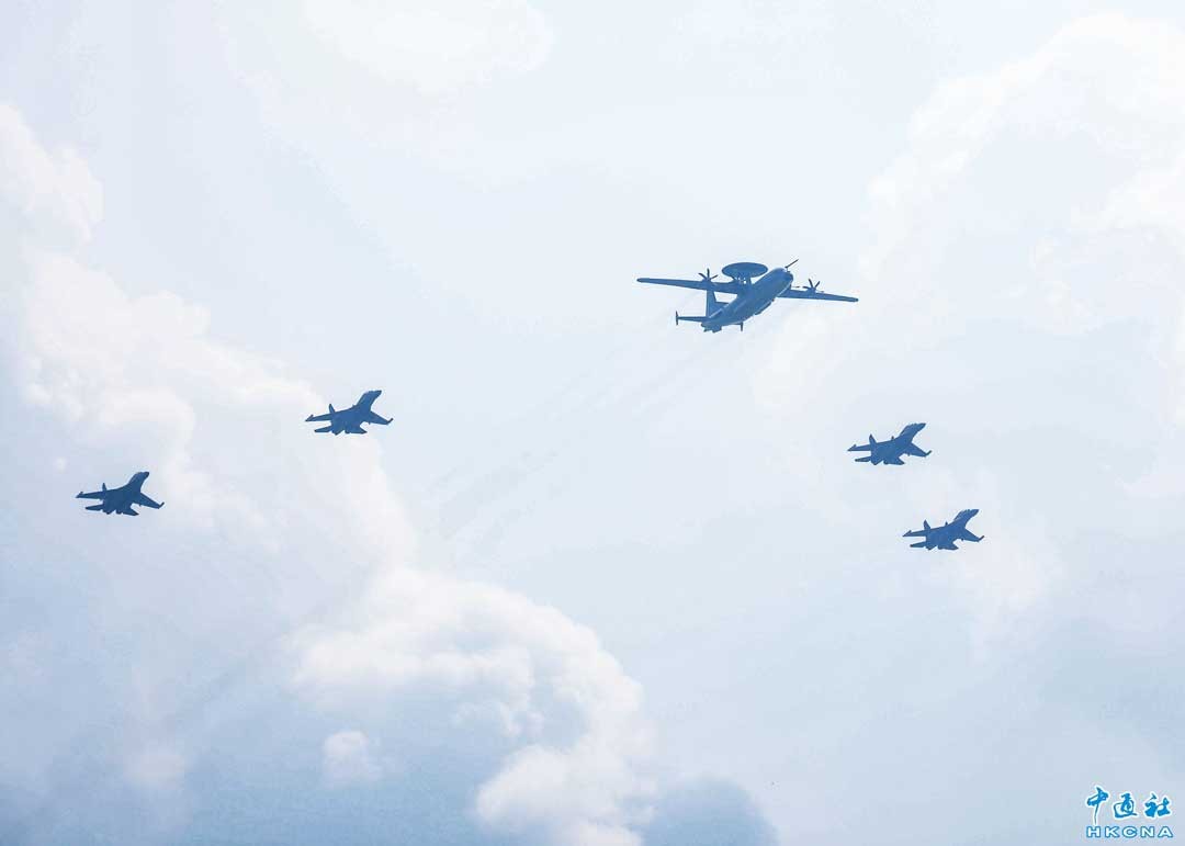 空中梯隊接受檢閱。(香港中通社記者 謝光磊攝)