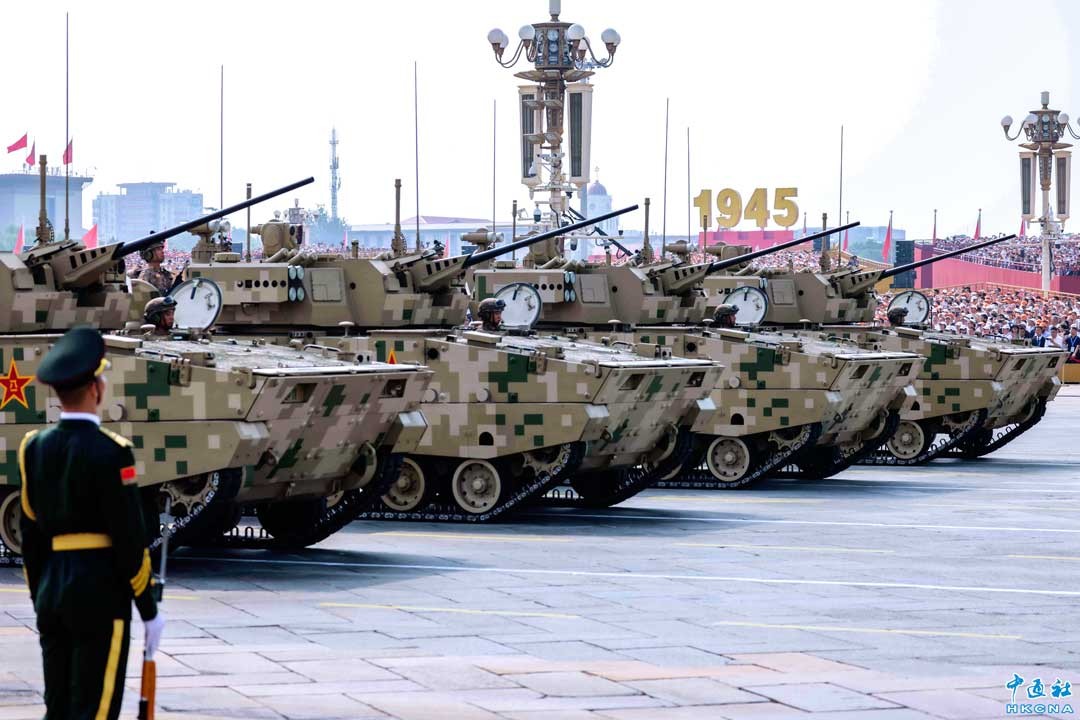 陸上作戰群接受檢閱。(香港中通社記者 謝光磊攝)