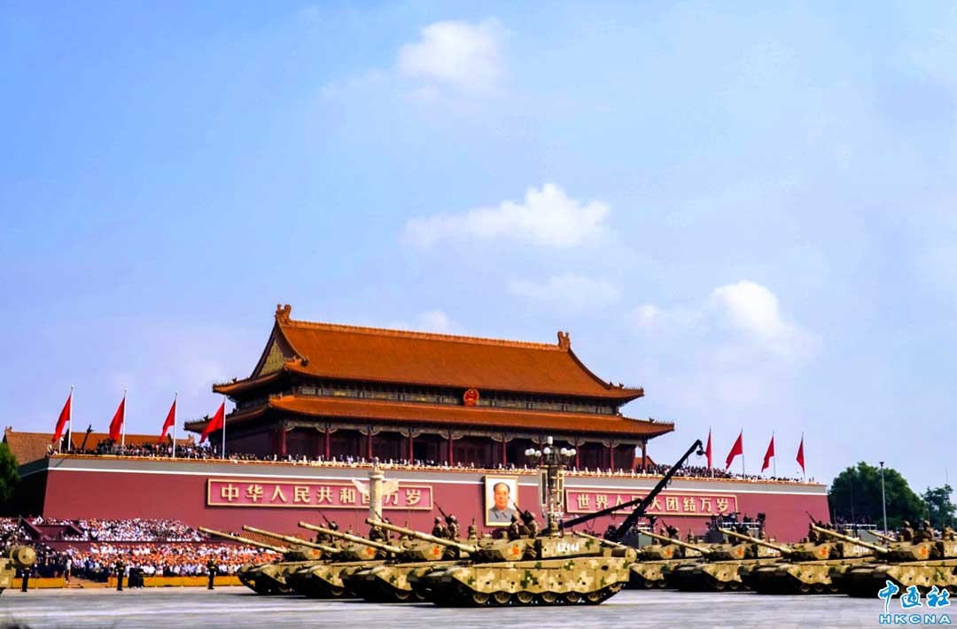 接受檢閱部隊經過北京天安門廣場。 (香港中通社記者 陳卓儀攝)
