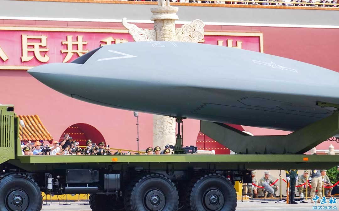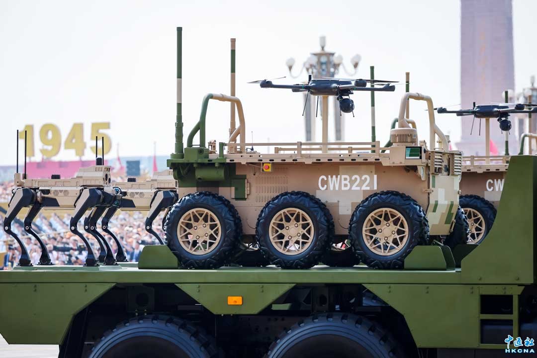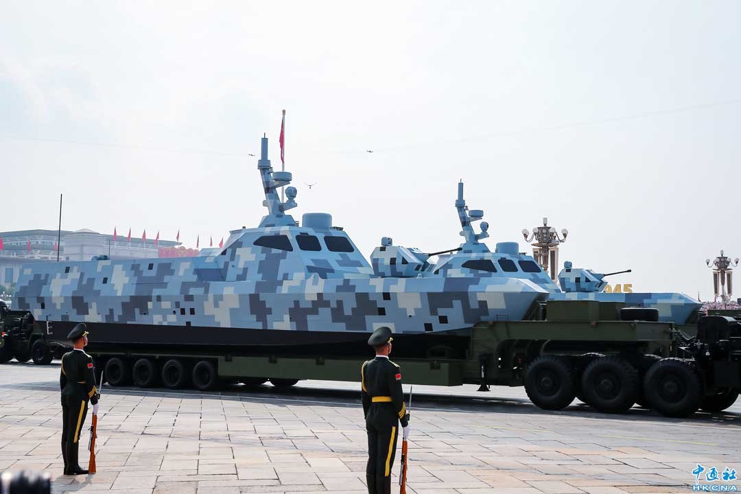 海上無人作戰方隊通過天安門廣場,接受祖國和人民檢閱。這個方隊受閱的新型無人潛航器、無人艇、無人布雷系統,具備隱蔽布放封鎖、自主探測識別、集群組網攻擊等作戰能力,是海上作戰的“奇兵利器”。(香港中通社記者 謝光磊攝)