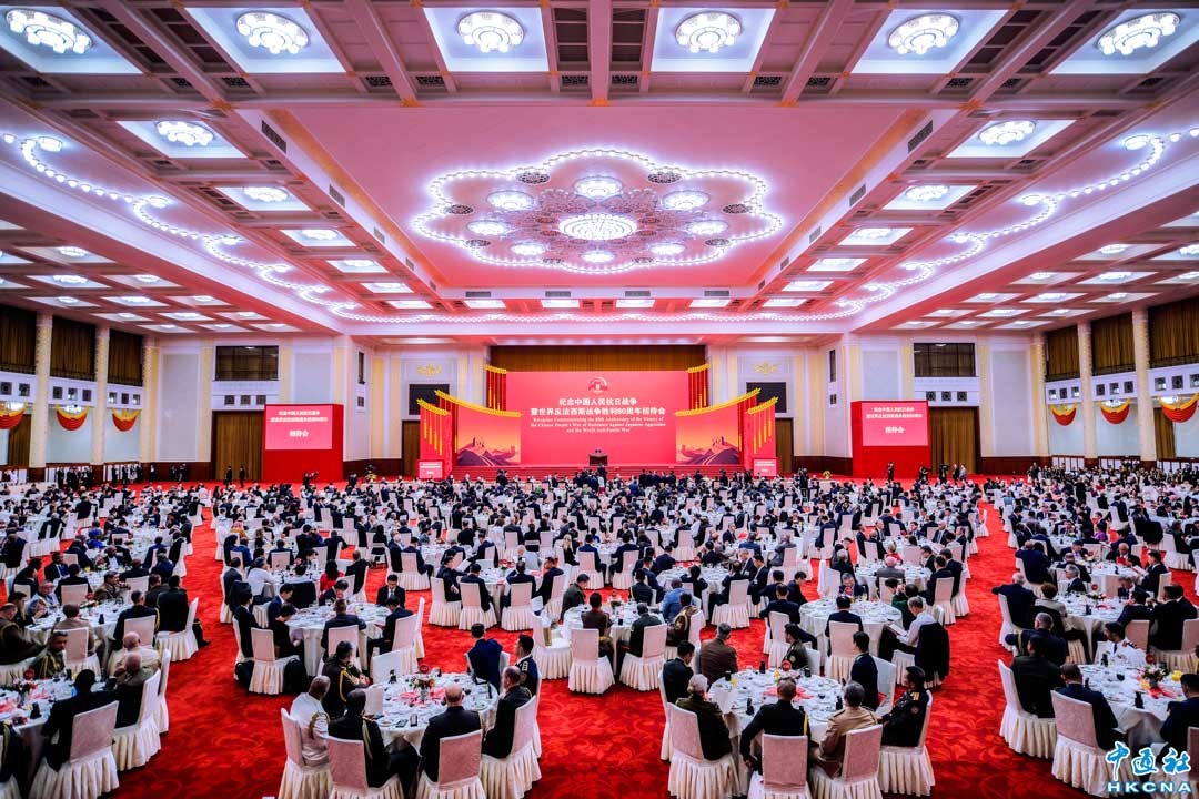 紀念中國人民抗日戰爭暨世界反法西斯戰爭勝利80周年招待會在北京人民大會堂隆重舉行。(香港中通社記者 許其皓攝)
