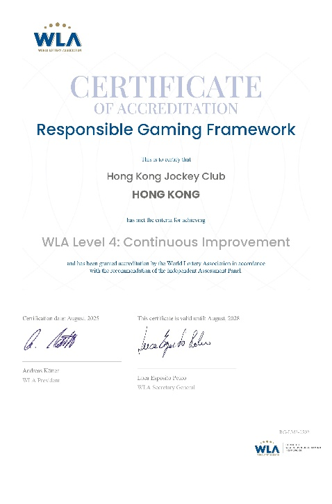 香港新聞網9月4日電 香港賽馬會連續五度獲得世界博彩協會(World Lottery Association)有節制博彩高級別的第四級別認證。