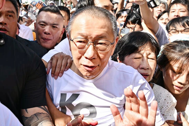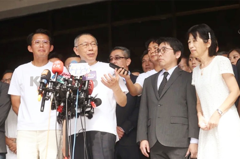柯文哲9月8日下午在法院發表談話後,走去向支持者致意。圖社媒臉書