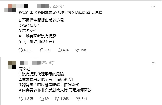 長期推動代理孕母議題的“立委”陳昭姿表示,理解考生們不適的感受。她認為,題目將學生局限在單一敘事中,限制了思考,若是設計成“知性題”(是否支持)或“情意題”(願不願意支持),或許較能引導思考,也更尊重學生的感受。