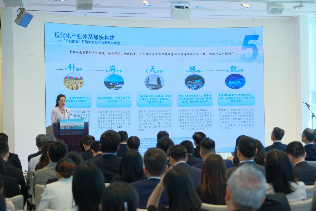 香港特別行政區政府財政司司長陳茂波、中央政府駐港聯絡辦經濟部部長徐衛剛、香港財經事務及庫務局副局長陳浩濂、香港金融管理局副總裁陳維民及海南省有關部門代表出席路演會議。在路演演示環節,海南省財政廳副廳長張雪向全球投資者重點介紹了海南自貿港建設階段性成果、全島封關運作後的新變化新機遇等有關情況。在投資者問答環節,海南省財政廳廳長蔡強就境外投資者普遍關心的海南自貿港封關運作後稅收政策變化及優勢、今年在港發行離岸人民幣地方政府債券品種特色和亮點等問題進行了回應。