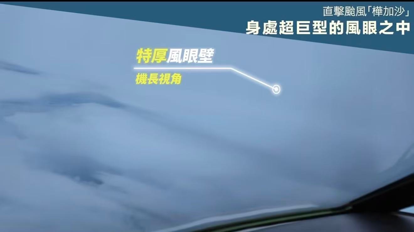 保安局在社交專頁上載片段,指由於今次颱風威力強大,範圍極廣,穿過暴風中心時不足以拍攝到完整清晰的風眼,只能捕捉到風眼壁的四分之一,形容十分誇張。