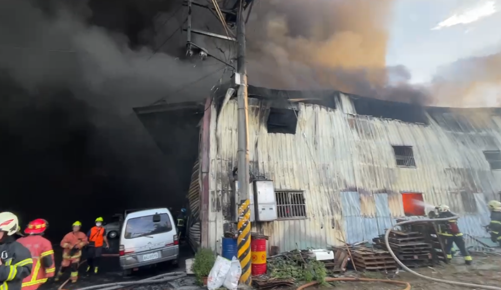 新北市消防局於24日清晨獲報,指樹林區西圳街一段52巷有一鐵皮工廠冒出大量濃煙,立即派遣42車105人前往搶救。消防人員於4時41分火速趕抵,現場3棟連棟式鐵皮工廠全面燃燒,黑色濃煙更直竄天際。