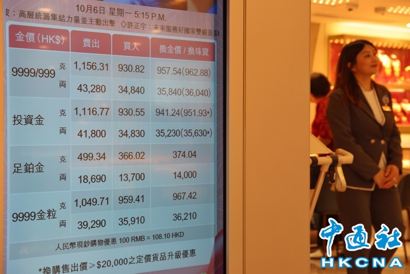10月6日,大批顧客在香港一家金店內選購黃金飾品。(香港中通社記者 謝光磊 攝) 香港中通社圖片