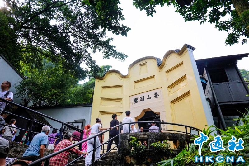 渣滓洞、白公館,國慶黃金周假期,來自全國各地的遊客擠滿山城。國慶長假前夕,香港中通社記者在這兩個看守所舊址看到,現場設有鮮花供獻祭,遊客有老有少,不少是紅色專線旅遊團。