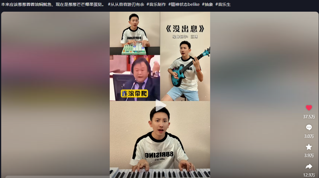 更有趣的是,陸續有不少才氣滿滿的大陸網友用鋼琴、架子鼓、嗩呐等樂器演繹,其中一條用鋼琴演繹的視頻,獲得近90萬讚,2.6萬評論,64萬轉發。