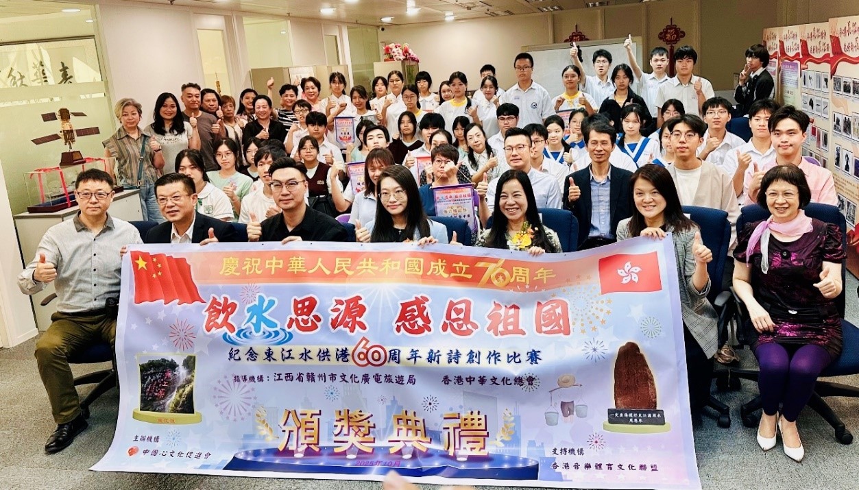 香港新聞網10月22日電 中國心文化促進會近日成功舉辦慶祝中華人民共和國成立76周年“飲水思源 感恩祖國”—慶祝東江水供港60周年新詩創作比賽頒獎典禮。