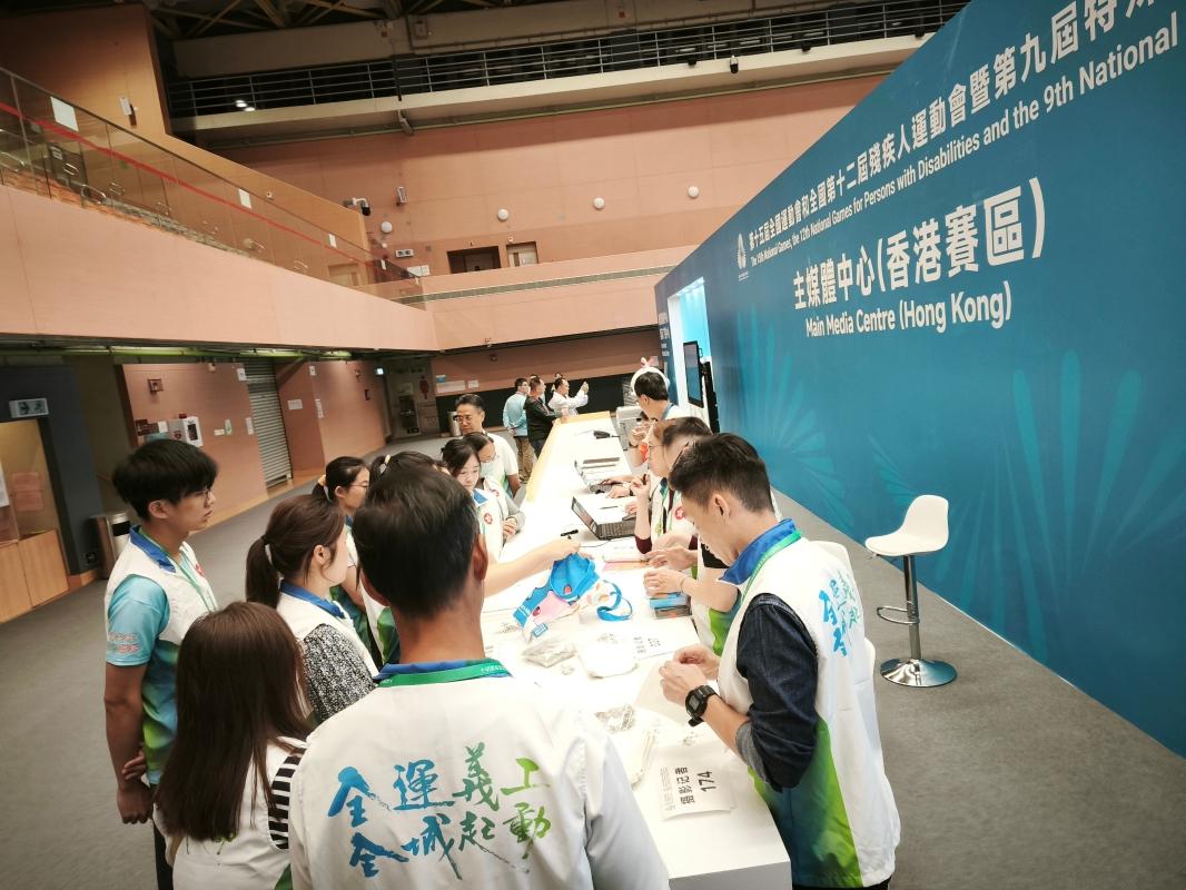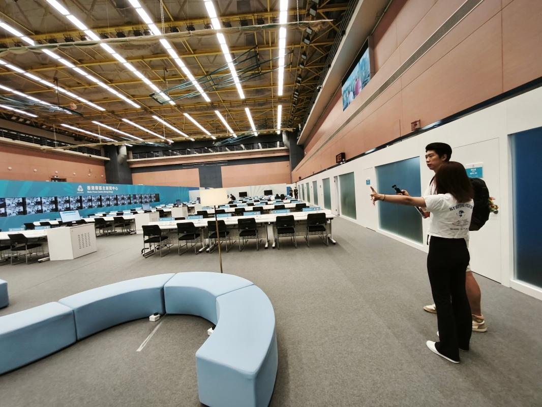 香港中通社10月26日電(記者 陳卓儀)第十五屆全國運動會香港賽區主媒體中心10月26日投入運作,香港中通社記者當天探訪體育館改裝而成的媒體中心,細節滿滿,頗有香港風情。