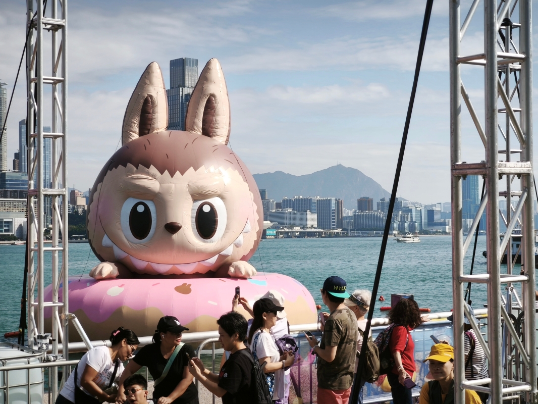 巨型充氣公仔LABUBU在維港展出
