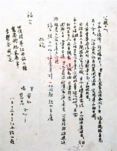 侯文理寫給兒子的信。