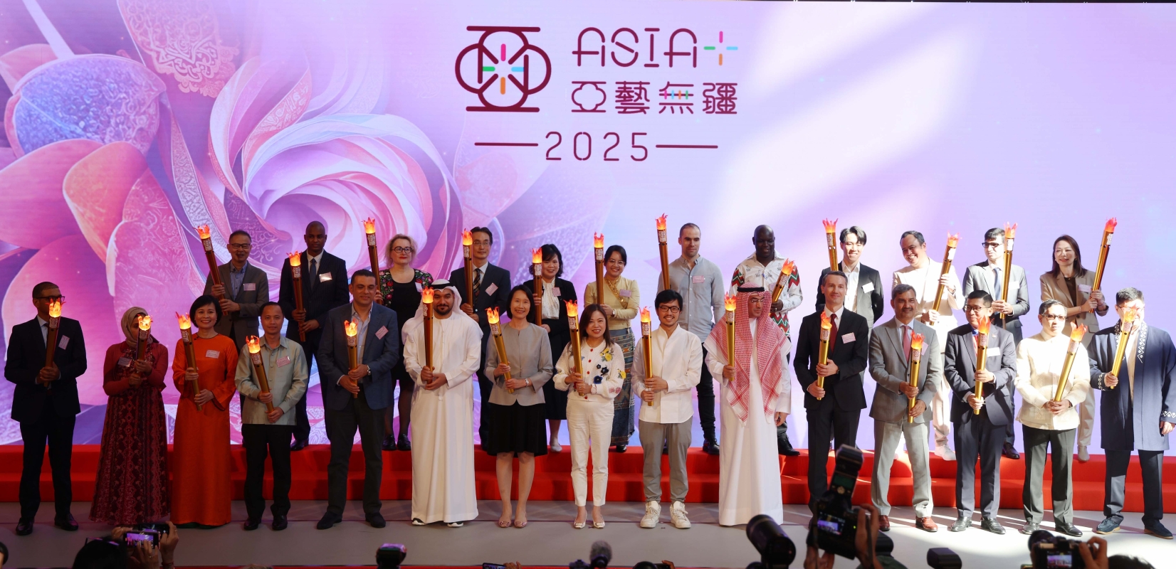 文體旅局局長羅淑佩(前排中),“一帶一路”專員何力治(左七)等嘉賓出席本次典禮