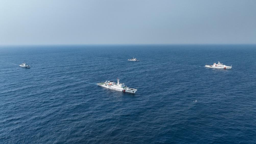 資料圖:中國海警4302艦編隊與越南海警8004艦編隊沿中越北部灣分界線進行編隊巡邏。圖源:中國海警局
