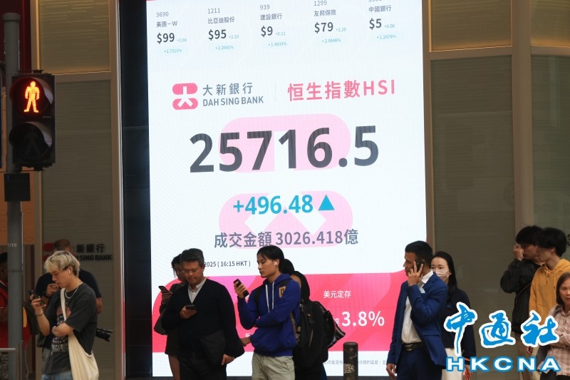 當天,恒指高開232點,報25452點後,升幅一度收窄至149點,低見25369點後回穩,在科技股回升帶動下,大市重拾動力。A股午後止跌回升,大市突破早市高位,曾多升550點,高見25770點。