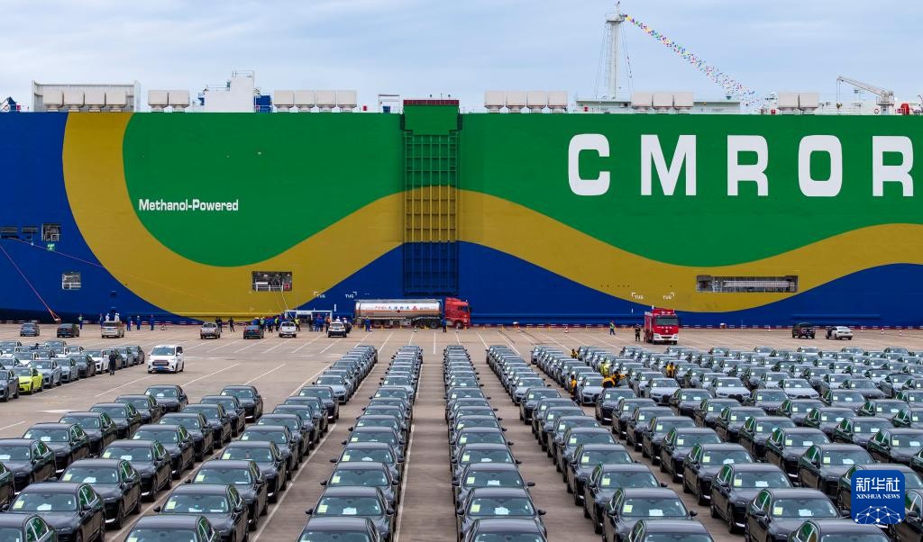 資料圖:9月22日,在天津港環球滾裝碼頭,汽車滾裝船“港榮”輪進行甲醇加註作業(新華社圖片)