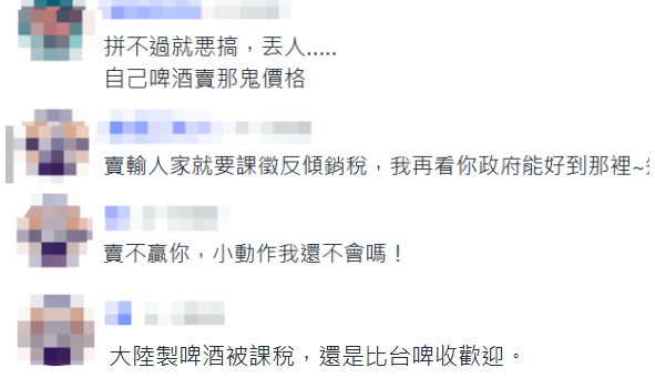 對此,台灣網友批評民進黨當局連啤酒都搞小動作,“拼不過就惡搞,丟人”。還有人直言,“大陸製造”的啤酒就算被課稅也比台啤受歡迎。