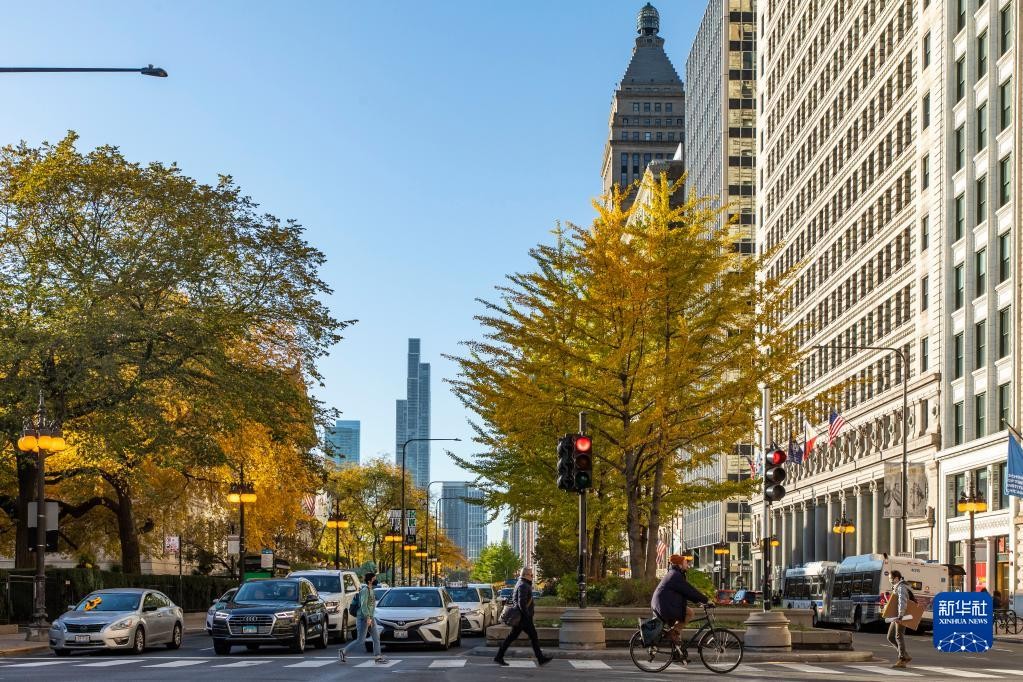 圖為行人穿過美國芝加哥密歇根大街。新華社資料圖