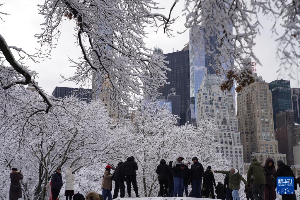 12月14日,人們在美國紐約曼哈頓中央公園賞雪。新華社資料圖