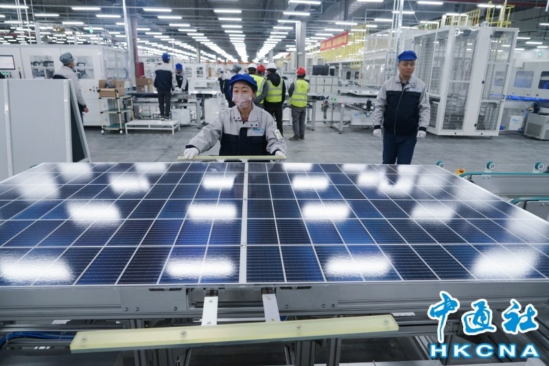 資料圖為光伏組件車間內,工作人員正在對產品進行檢查。 香港中通社圖片