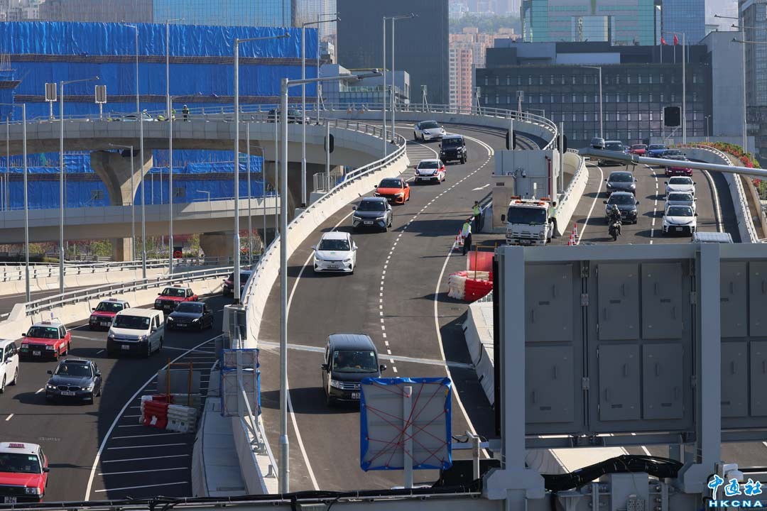 12月21日,香港中九龍繞道(油麻地段)於上午10時正式通車。中九龍繞道(油麻地段)全長4.7公里,採用雙程三線分隔車道的設計,連接西九龍的油麻地交匯處與東九龍的啟德發展區及九龍灣道路網,成為橫跨九龍中部的重要幹道。中九龍繞道(油麻地段)有助車流繞過原有的繁忙主要道路,大幅縮短繁忙時間來往油麻地及九龍灣的行車時間。(香港中通社記者 鄧梓傑 攝)