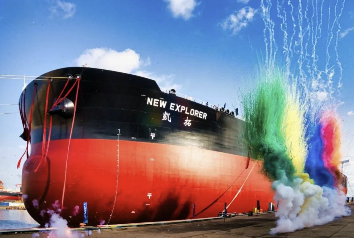 12月22日,中船大連造船聯合中船貿易為招商輪船建造的全球首艘甲醇雙燃料動力智能超大型原油運輸船“凱拓”輪提前合同期4個月成功交付,被譽為中國造船工業在綠色智能轉型領域的里程碑式突破。由於採用國產甲醇雙燃料主機和甲醇燃料供給系統,相比使用常規燃油,二氧化碳排放高減少92%,硫氧化物SOx排放減少99%,顆粒物PM減少90%。