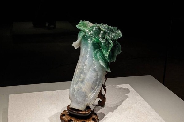圖為收藏於台北故宮博物院的“翠玉白菜”。圖源:台灣“中央社”