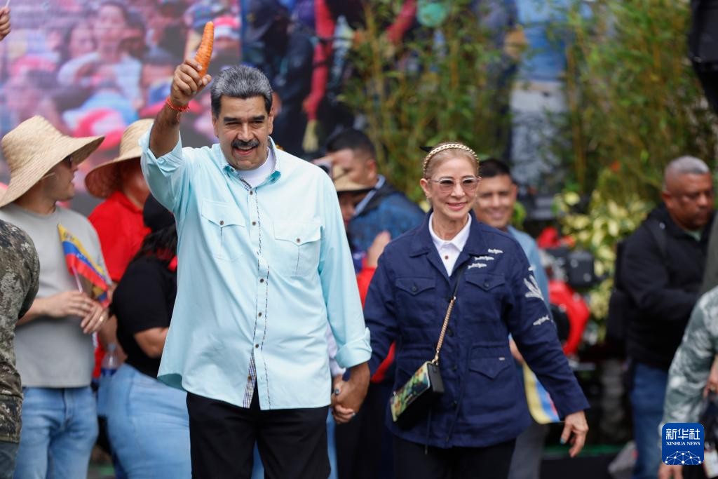 這是2025年12月10日馬杜羅及其夫人在委內瑞拉首都加拉加斯參加活動的資料照片。圖源:新華社