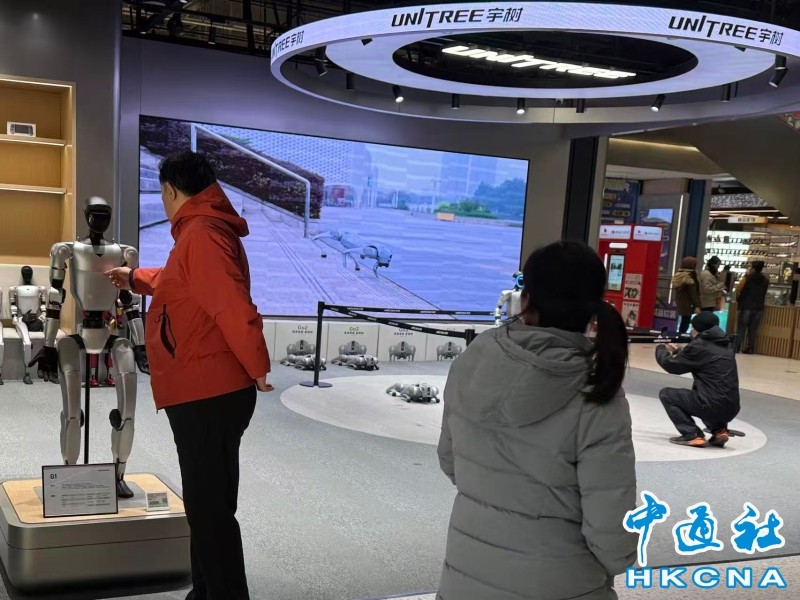 2026年1月4日,北京市朝陽區京東MALL內,消費者正在宇樹科技全球首家線下門店內參觀、選購機器人。 香港中通社圖片