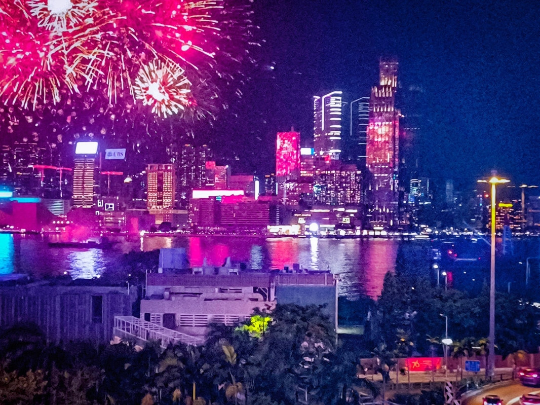 2025年10月1日晚上8時,國慶節煙花匯演在維港上空盛大開啟。香港中通社圖片