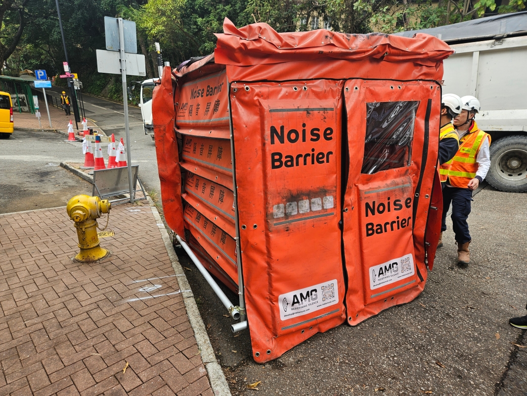 該段約300米長的道路於2月1日(星期日)從上午8時至晚上10時完成相關工作,包括刨去路面舊瀝青、打鑿、清理、重鋪及壓平等,施工一整天後於晚上10時重開有關路段,相比原先需要三晚完成,提升效率之餘亦減少連續數天影響居民作息。此外,聲學超材料隔音罩較傳統的隔音罩輕巧,易於移動,而其三面百葉的設計亦能確保良好的通風,保障工人的健康安全,並顯著改善施工環境。