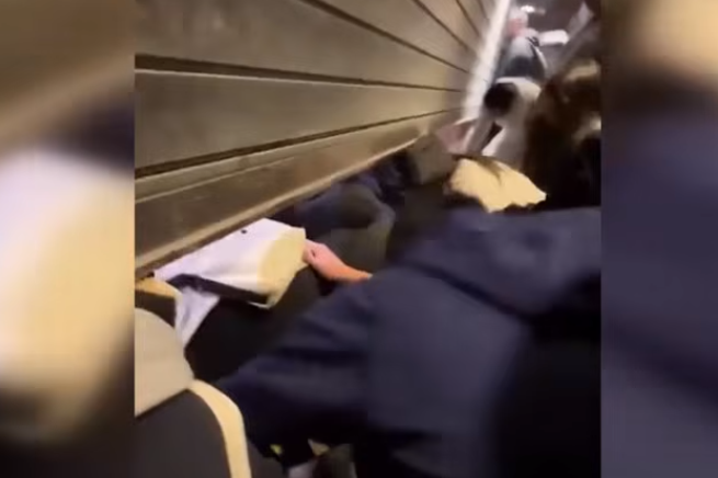 商場剛開門,就有大批台灣民眾著急鑽過鐵門搶先排隊。圖源:台灣“TVBS NEWS”