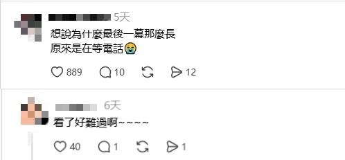 “想說為什麼後一幕那麼長,原來是在等電話。”這條熱評收穫接近900的點讚,還有不少被《紙手機》深深感動的台灣網友,也直言“看著看著眼睛就濕濕的。”“即使知道是AI,也哭得一塌糊塗。”更有評論說:“這就是AI的意義。”